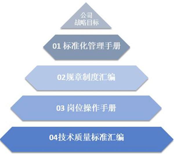 第一層:標(biāo)準(zhǔn)化管理手冊(cè),主要規(guī)范涉及公司級(jí)管理流程、跨部門操作的管理事項(xiàng)。