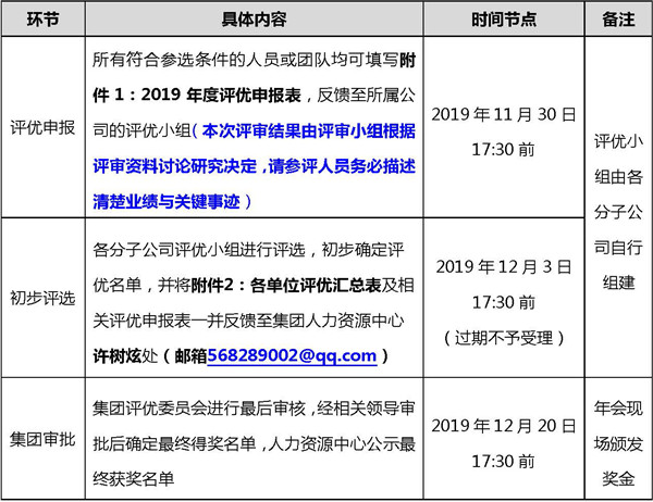 為弘揚(yáng)公司企業(yè)文化,認(rèn)真落實(shí)公司"勤勉誠(chéng)信、務(wù)實(shí)創(chuàng)新、精益高效、共存共贏"的價(jià)值觀, 表彰為集團(tuán)發(fā)展做出杰出貢獻(xiàn)的優(yōu)秀團(tuán)體與個(gè)人,激發(fā)員工榮譽(yù)感與向上的動(dòng)力,表彰先進(jìn),樹立榜樣,集團(tuán)決定開展 2019 年度評(píng)優(yōu)工作,現(xiàn)將有關(guān)事項(xiàng)通知如下: