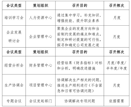 年針對公司級的經營管理會議召開做進一步完善,具體安排如下: