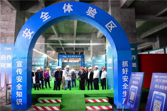 趙坤書記帶領調研組深入施工現場考察,并認真聽取了項目基本建設情況匯報。在考察項目現場安全體驗區(qū)時,趙坤書記了解到建星在安全質量管理方面,不僅運用標準化的管理模式進行現場管控和安全質量意識教育,還積極運用信息化手段,自主開發(fā)“新建造”信息管理平臺,實現項目施工成本過程管控、項目進度實時監(jiān)控、質量檢測與安全巡場信息化、工程資料管理平臺化、資質系統建設系統化五大功能,有效完成項目全過程動態(tài)管理。