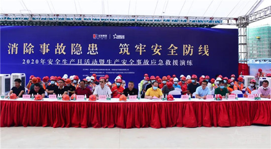 6月18日,2020年安全生產(chǎn)月活動暨安全生產(chǎn)事故應(yīng)急救援演練,在建星集團(tuán)承建項目金灣華發(fā)國際商務(wù)中心商務(wù)區(qū)順利舉行。