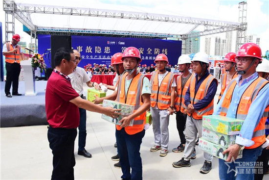 隨著夏季高溫天氣的到來,為切實保障廣大職工在高溫天氣下工作的身心健康,建設(shè)單位向施工人員代表發(fā)放防暑降溫物資,讓一線職工感受到關(guān)愛和溫暖。