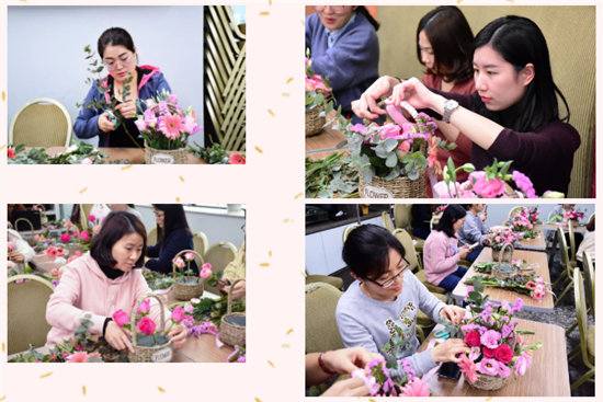 公司特別邀請了專業(yè)花藝師,現(xiàn)場講解挑花、養(yǎng)花小妙招,手把手指導(dǎo)插花搭配技巧。