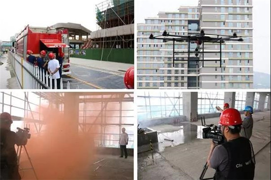 本次“工地安全專場”活動分為三個環(huán)節(jié),分別是安全技能比賽、超高層無人機滅火演練、消防應急救援演練。