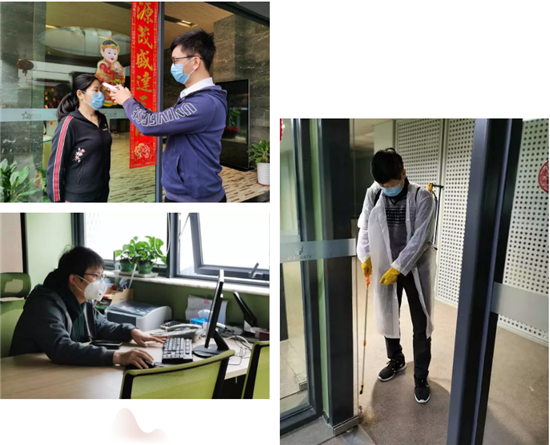 人員登記、體溫測量、口罩發(fā)放、防御消毒、自備餐具、有序分批就餐……保障著每一位員工的健康和安全。