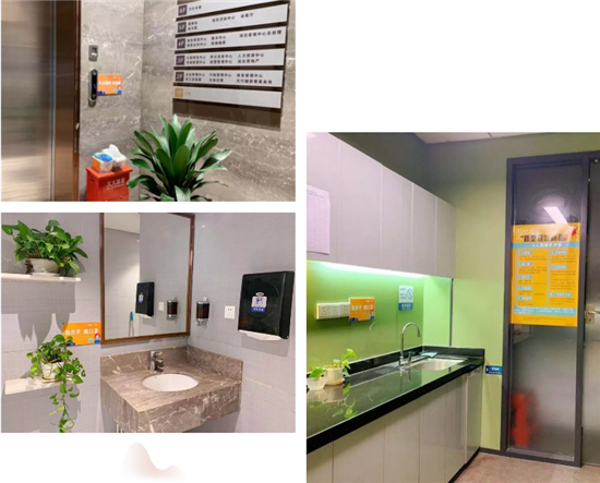 電梯口、茶水間、洗手間等公共區(qū)域粘貼疫情宣傳海報及警示,提高員工的防疫意識。