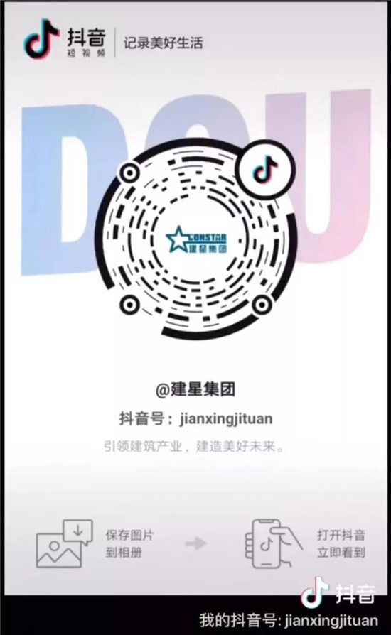 建星集團官方抖音號正式上線營業(yè)啦!集團新媒體矩陣再添一員,小伙伴們,快快關注它!保存下圖,進入抖音APP掃描圖中二維碼