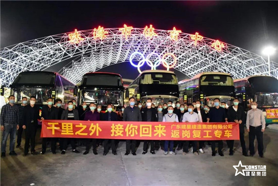 為了積極響應(yīng)國家關(guān)于復(fù)工復(fù)產(chǎn)的政策號召,建星集團(tuán)統(tǒng)籌制定了有序復(fù)工復(fù)產(chǎn)的方案,開通3條專線19輛返崗專車,由21名黨員組成“專管員”隊(duì)伍,連赴湖南、四川、河南、江蘇、重慶5個(gè)省市,31個(gè)縣鄉(xiāng)平安接回建筑工人近500人,成為珠海首家用專車接送工人返崗的建筑企業(yè)。一手抓疫情防控,一手抓復(fù)工復(fù)產(chǎn),建星集團(tuán)黨總支為工人安全健康筑起了一道牢不可破的鋼鐵防線。