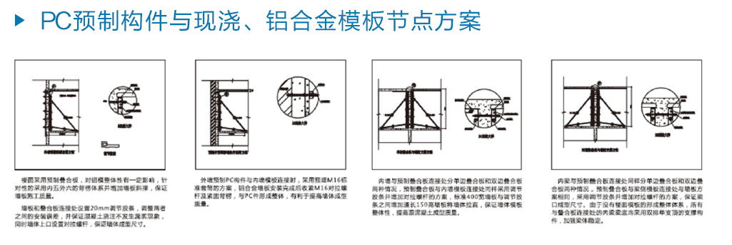 合迪科技始終以打造“綠色建筑”為使命,引領行業發展方向,不斷創新研發,并致力推動中國綠色建筑施工的持續健康發展。作為《組合鋁合金模板工程技術規范》國家行業標準、《鋁合金模板技術規范》省行業標準主編單位,合迪科技嚴格按照國家標準控制鋁合金模板設計、生產及加工質量。率先國內項目應用的滴水線成型、砌體企口、窗邊結構防水等技術,采用高強度新型背楞、標準化施工程序及施工質量過程控制程序,實現房屋建筑一次性成型達到粗裝修標準。