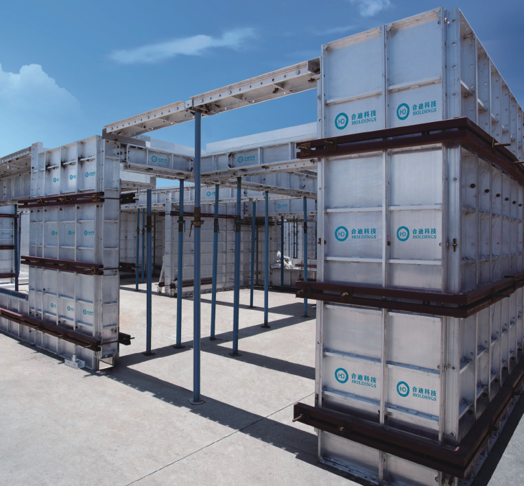 合迪科技鋁合金模板系統采用模塊化設計、生產、拼裝,標準構件可達70%以上,使用過的模板在用于新的建筑物時,只需更換20-30%左右的非標準板,可降低成本。