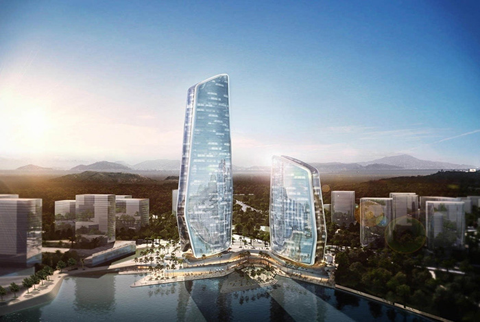 項(xiàng)目位于金灣西湖片區(qū)啟動(dòng)區(qū),山湖海路南側(cè),金鑫路西側(cè)。總建筑面積約171736.28平方米,呈“雙子塔”建筑群。其中,1#塔樓建筑高度約186米,共41層,建筑面積約8萬平米;2#塔樓150米,共39層,建筑面積約2.8萬平米。塔樓規(guī)劃功能包括國(guó)際標(biāo)準(zhǔn)甲級(jí)寫字樓、五星級(jí)酒店、商業(yè)配套設(shè)施等。
